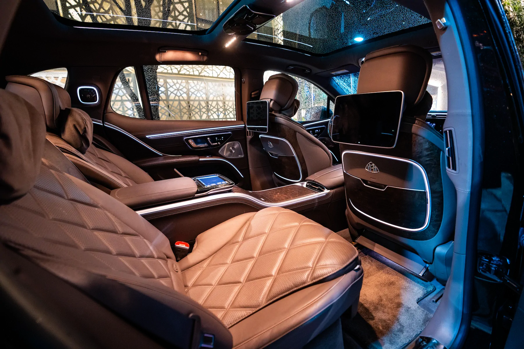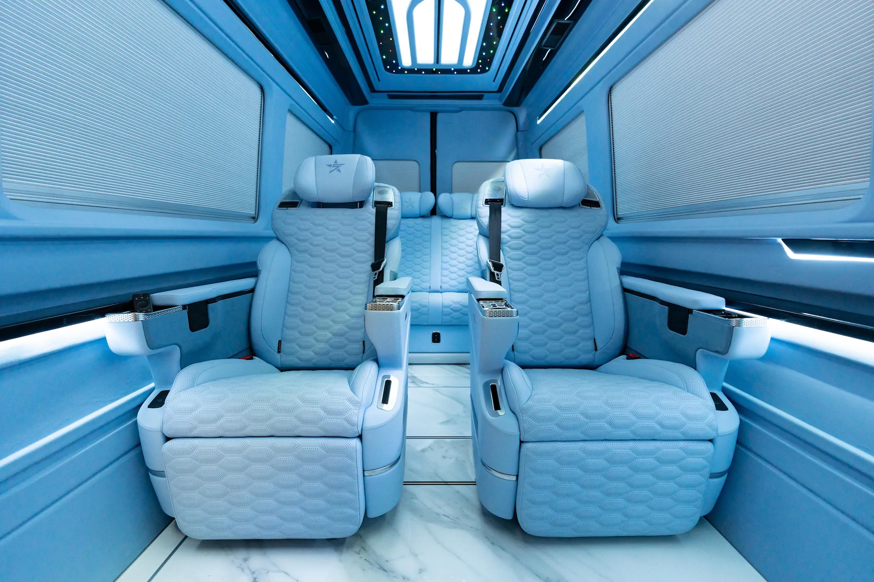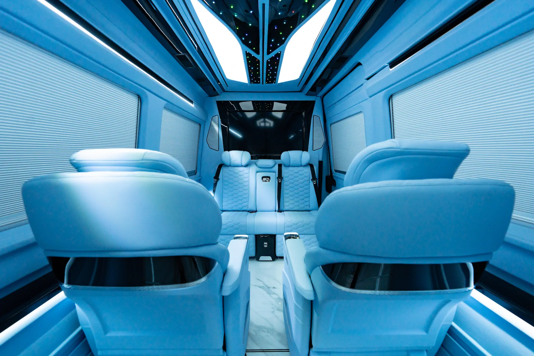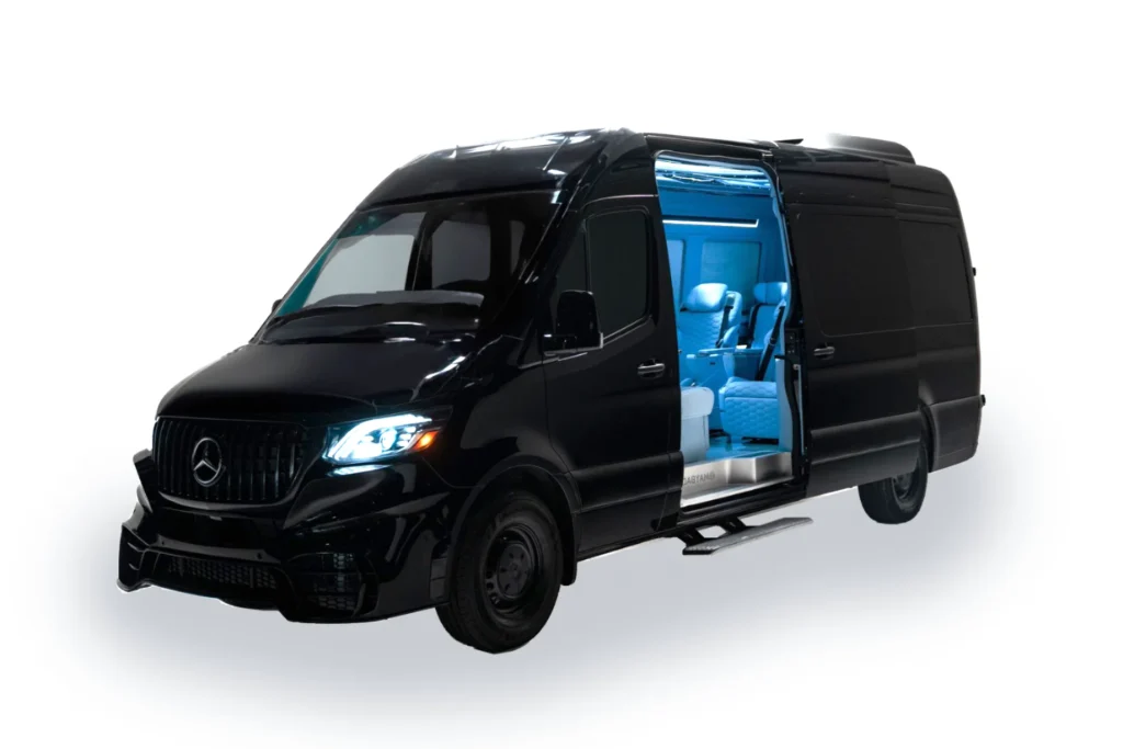 Skyblue Edition Sprinter • 14-Passenger Regular Sprinter • Royal Blue Maybach Van • Tiffany Blue Maybach Van • Maybach EQS • Chevy Tahoe -Black Edition • Cadillac Escalade – Black Edition